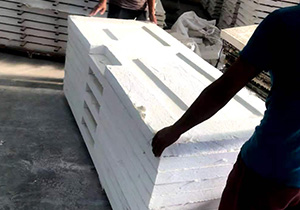 、煙道板,主要成份為硅微粉、活性高純氧化鎂、氯化鎂、抗堿玻纖布、柔性極佳的植物纖維、不燃質(zhì)輕的珍珠巖、粉煤灰、化學(xué)穩(wěn)定立德粉、高性能改性劑經(jīng)板材成型機(jī)滾壓成板材,將板材割成需要的大小,再拼接成組合式高強(qiáng)耐火排煙道。